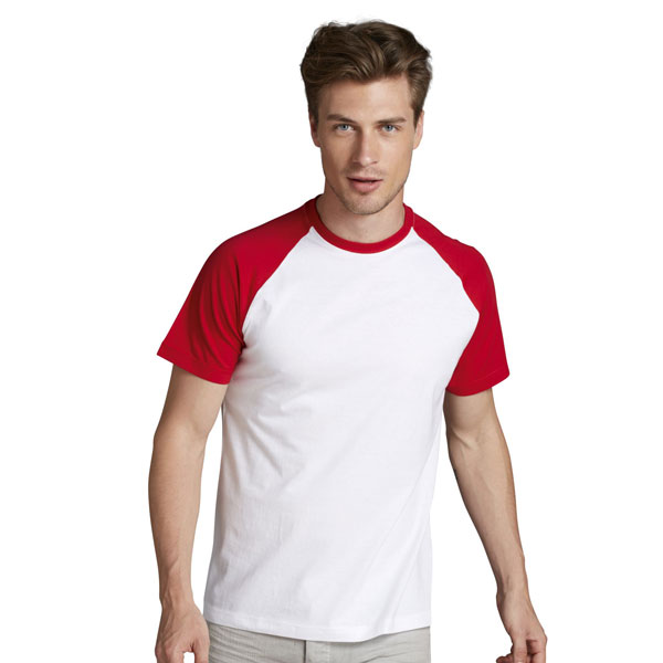 Kvalitné značkové pánske tričko s krátkymi raglánovo vsadenými kontrastnými rukávmi. Tričko je strednej gramáže a má oválny výstrih. Bavlnený materiál zabezpečuje príjemné nosenie. Výrobca týchto tričiek je členom organizácie Fair Wear Foundation, ktorá usiluje o zlepšenie podmienok na pracoviskách textilného priemyslu v Číne, Bangladéši a Indii.